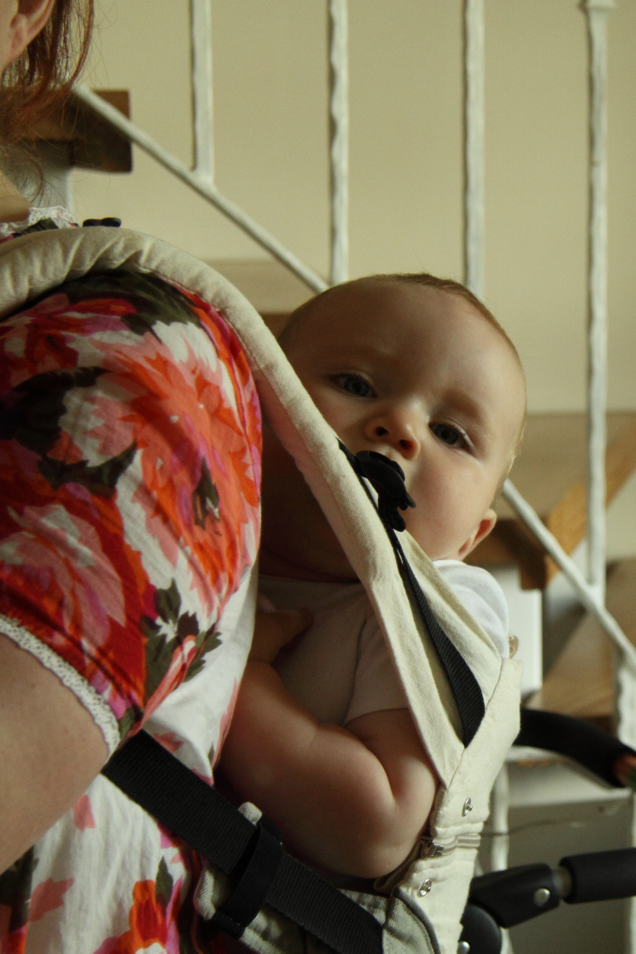 Eines der dazu heißgeliebten Accessoires ist der Babyrucksack. Bis jetzt kein wirklich interessantes Tragemittel für den kleinen Neo, ist es jetzt ein Muss, mehrere Male am Tag. Am liebsten mit einem Keks in der Hand, lässt er sich damit im Haus und auf dem Hof herumtragen.