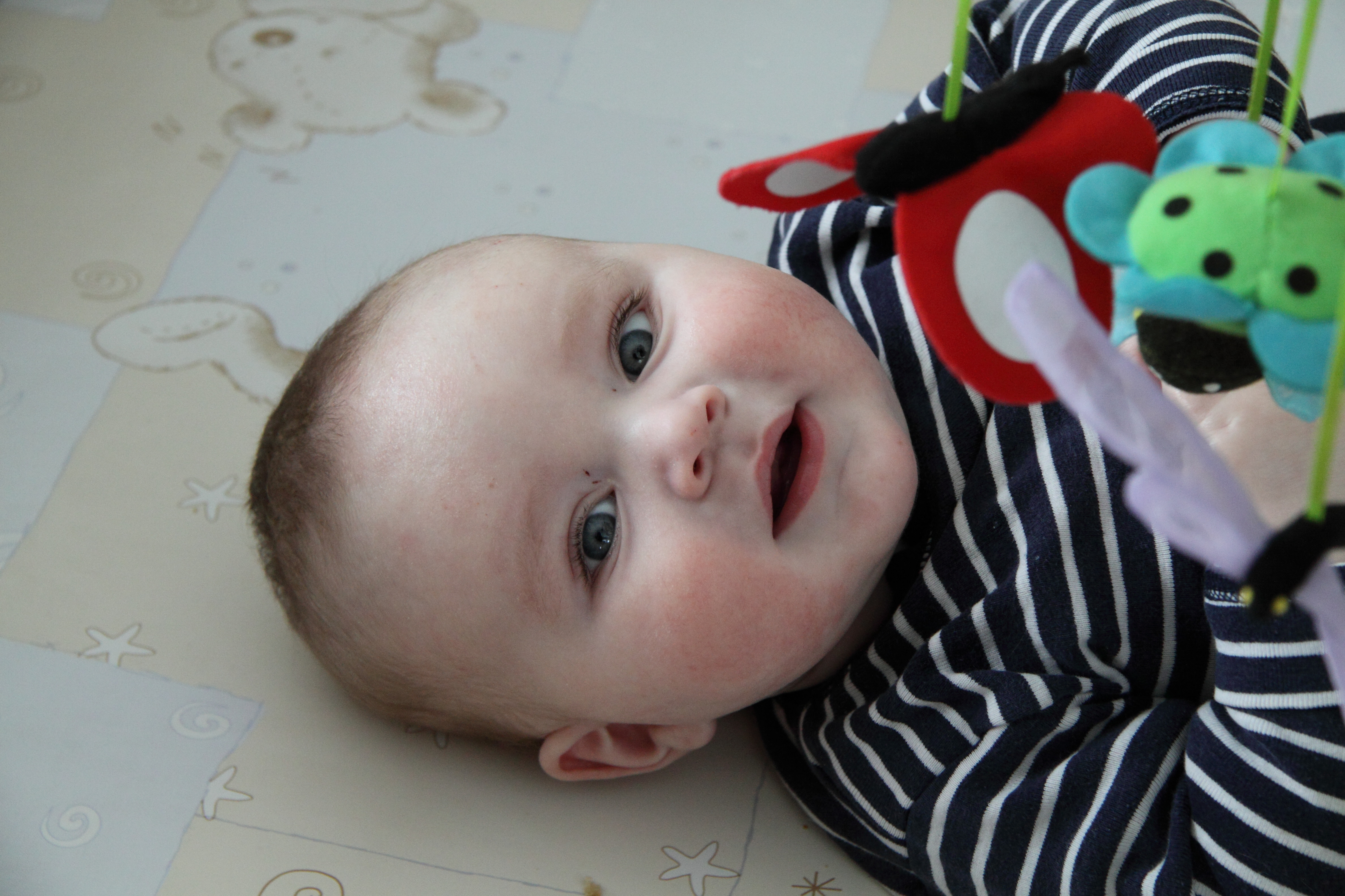 Mit 6 Monaten nun, haben wir Anfang letzter Woche den ersten kleinen Zahn bei ihm entdeckt. Knappe 2 Monate früher, als bei dem Baron damals.