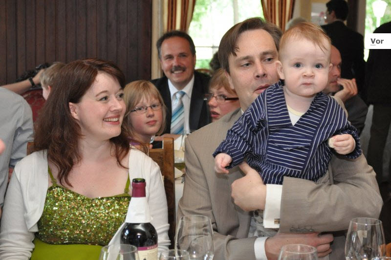 Trotz einer standesgemäßen Kamera haben wir es in den letzten 11 Monaten nicht geschafft, ein Familienfoto von uns zu machen. Hier bot sich die Hochzeit einer Freundin an, die einen Fotografen engagierte. Und hier gab es dann endlich das entsprechende Foto mit allen Drei zusammen. 🙂