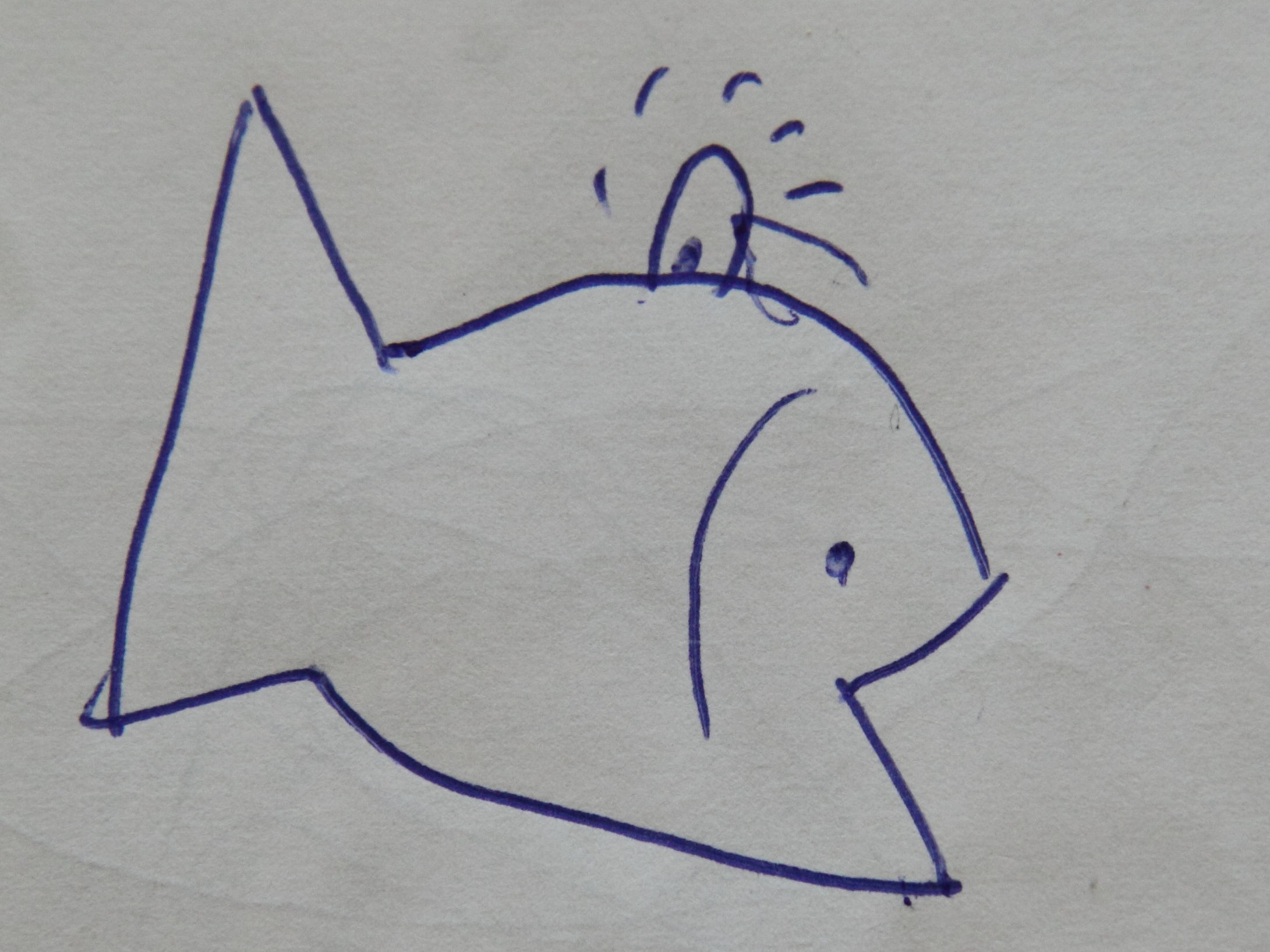 So durfte ich vor einiger Zeit einen Fisch malen. Ok, das bekomme ich noch hin, fasst nur geometrische Formen. Fertig! Fisch gemalt! Der Baron gab danach den unverwechselbaren Laut für eine Feuerwehr bzw. eines Polizeiwagens von sich. Und anstatt eines zu malen, machte ich es mir einfach und setzte auf den Fisch einfach ein Blaulicht. Fertig!