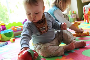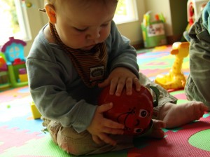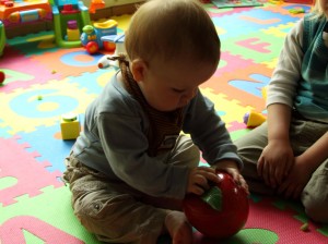 Floris Mama, aus unserer zweiten Krabbelgruppe, brachte in der letzten Woche zu unserer großen Überraschung den Happy Apple mit. Wie damals berichtet, fand der Baron diesen schon zu Pekipzeiten sehr klasse. Nachdem wir nun einige Zeit nicht mehr dorhin gehen, wurde auch der Happy Apple vergessen und ich war der Meinung, dass das auch kein interessantes Spielzeug mehr für den Baron sei. Somit erübrigte sich für mich die schwierige Beschaffung des glücklichen Apfels.
