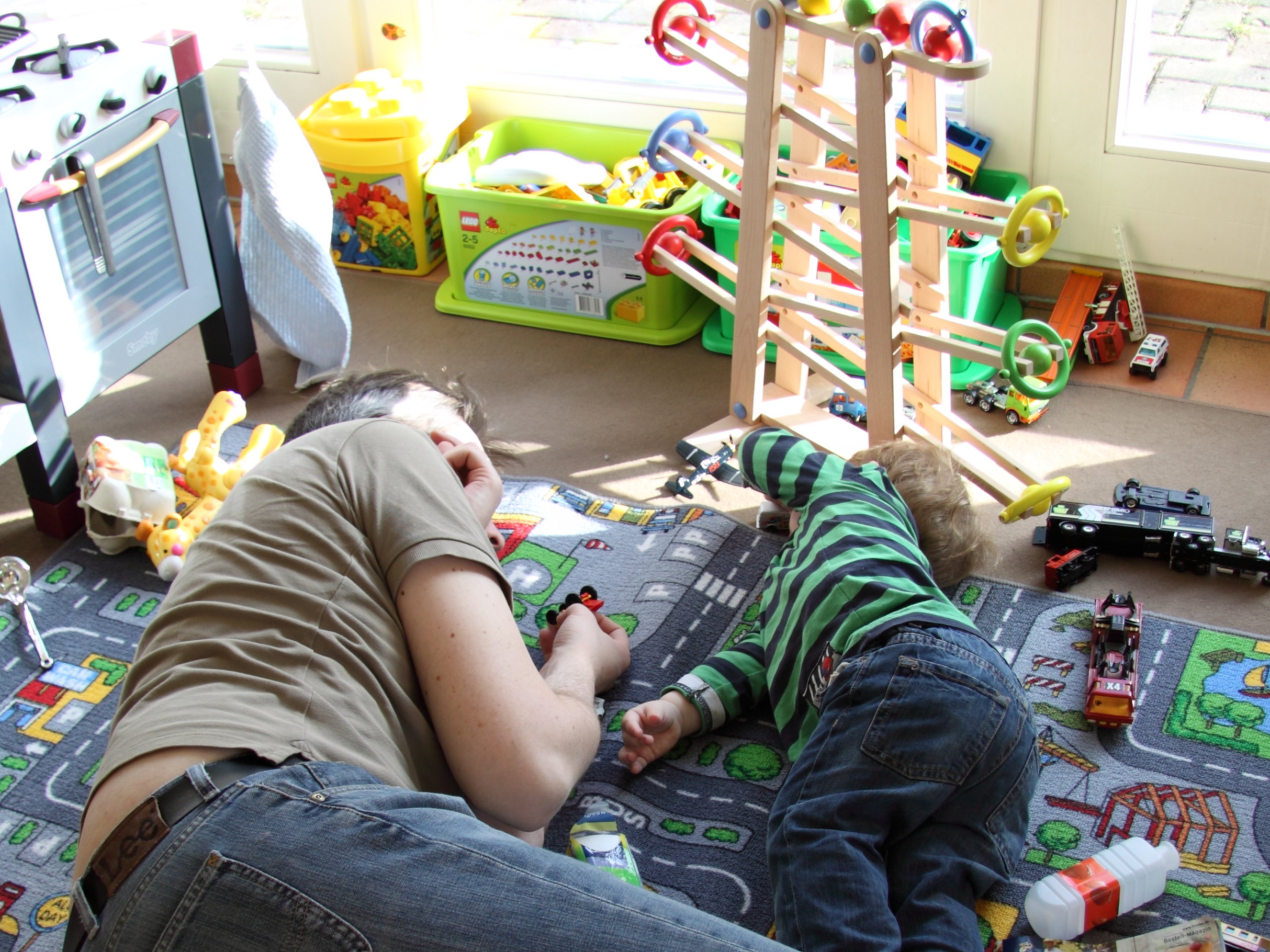 Ganz spannend wurde es, als der kleine Baron sich in einem Spielwarenladen einen Bagger aus dem Regal geschnappt hat und sich direkt vor Ort in den Gang gelegt hat.