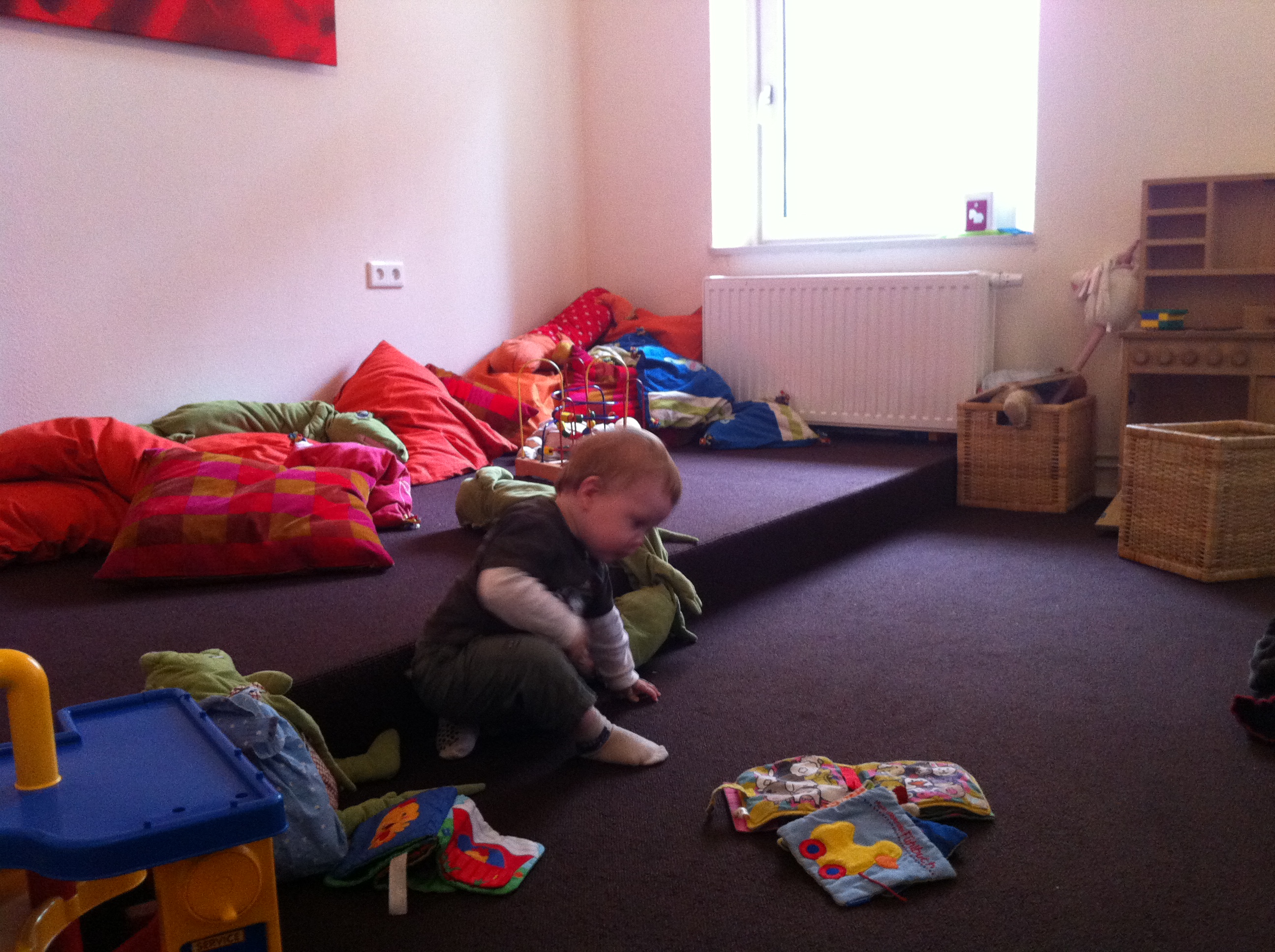 Wir nahmen im Café in der Nähe der Spielecke platz und setzten den Baron in diese. Auch hier war er sehr lange mit den vorhandenen Spielzeugen beschäftigt und lernte nebenher noch Kinder in seinem Alter kennen.