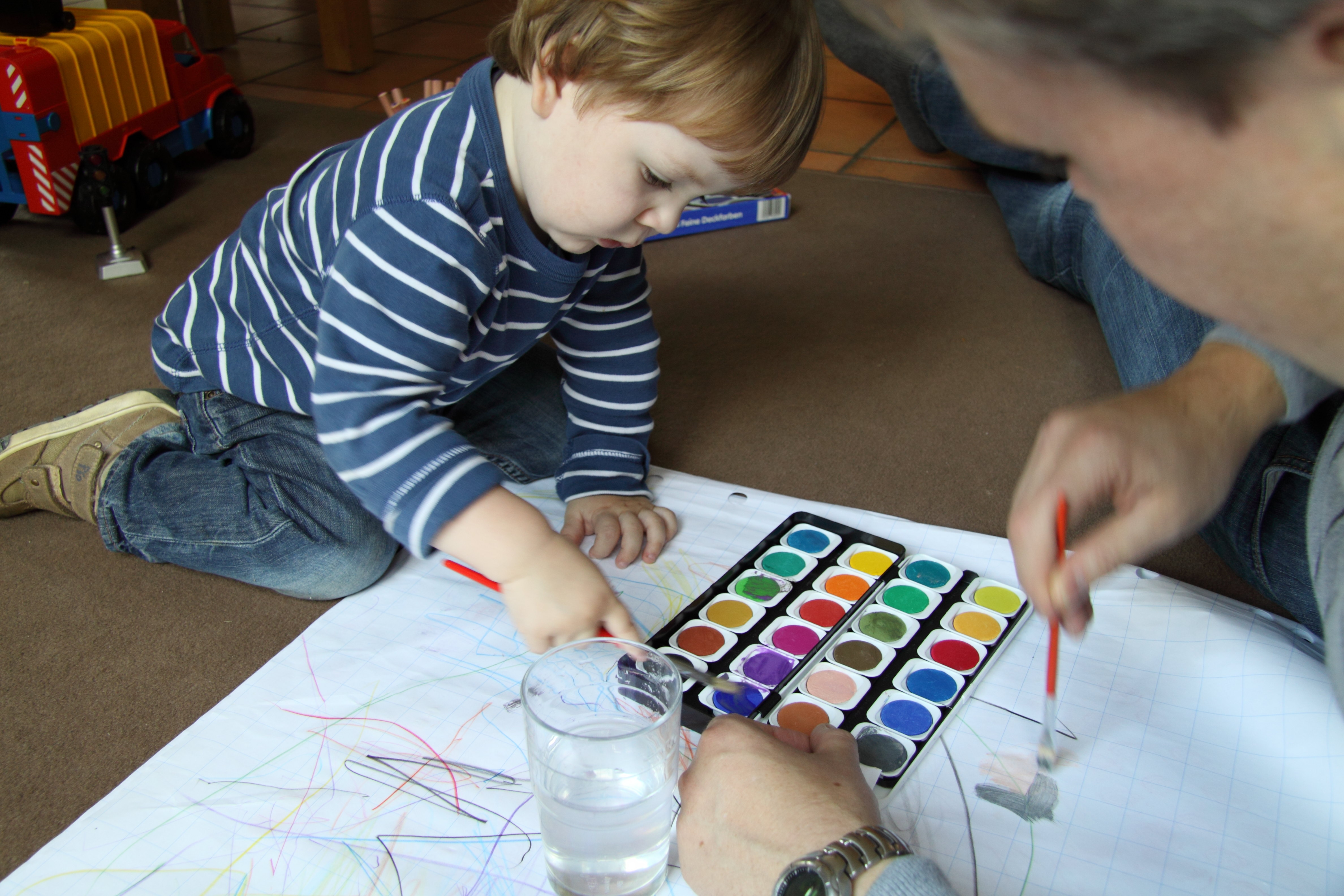 Und natürlich bleibt es nicht aus, dass der kleine Künstler sich die Freiheit nimmt und auch mal Wände und Böden mit seiner Kunst versorgt.