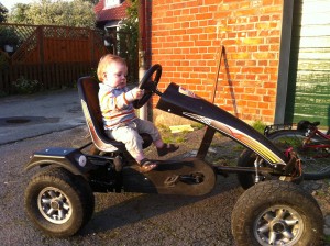 Abschliessend können wir sagen, dass wir einen tollen Geburtstag zusammen mit dem Baron gefeiert haben. Er hat sehr lange durchgehalten. Mit seinem Racing-Car war er bei vielen Gästen ein Symphatieträger, er hat das erste Mal Spanferkel gegessen und ein weiterer Weg in Richtung Rennfahrer oder/und Schlagzeuger wurde geebnet. 🙂