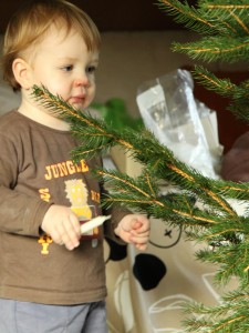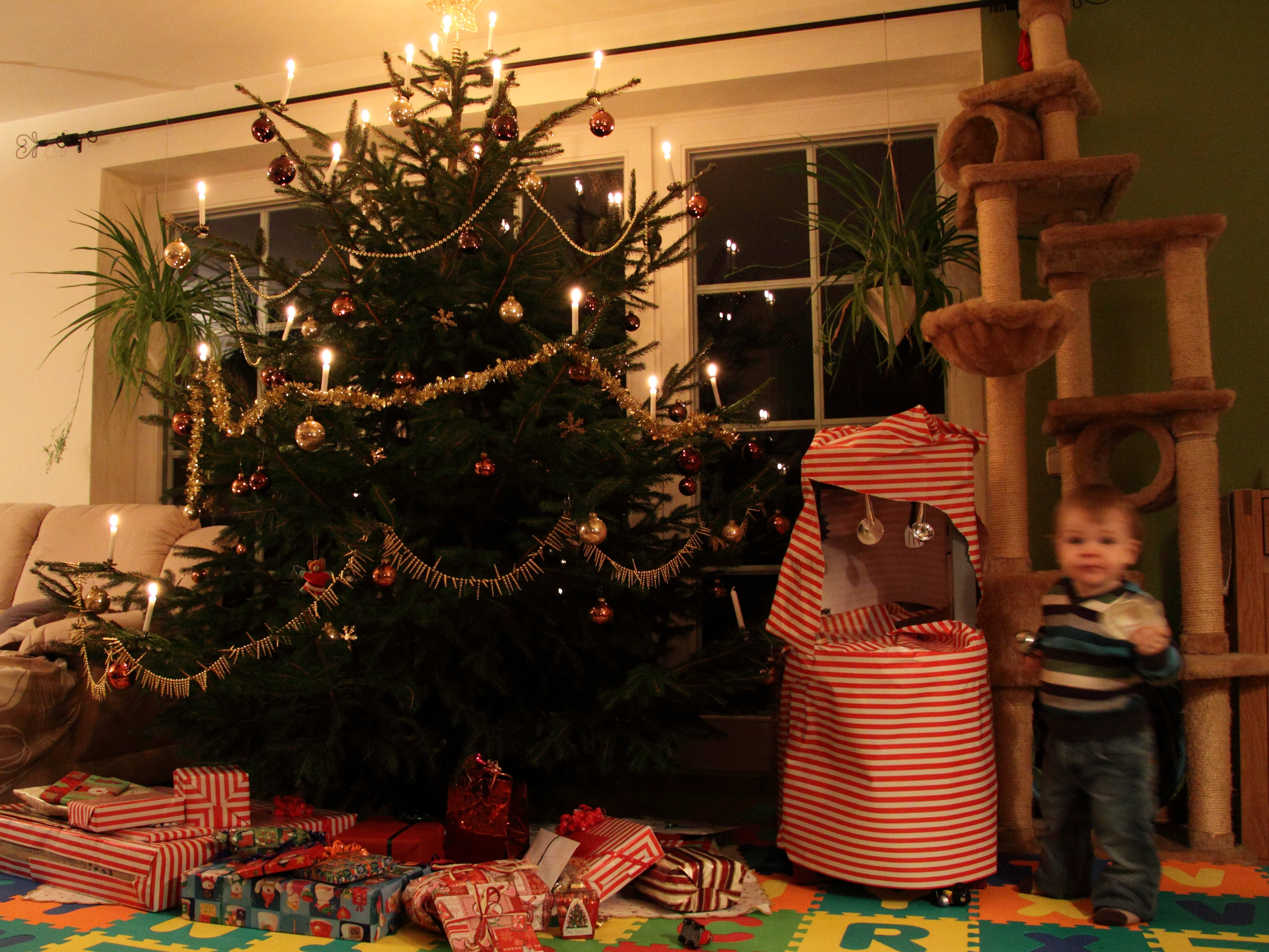 Und nun wird der Baum auch noch geschmückt, mit KERZEN. Wahnsinn!