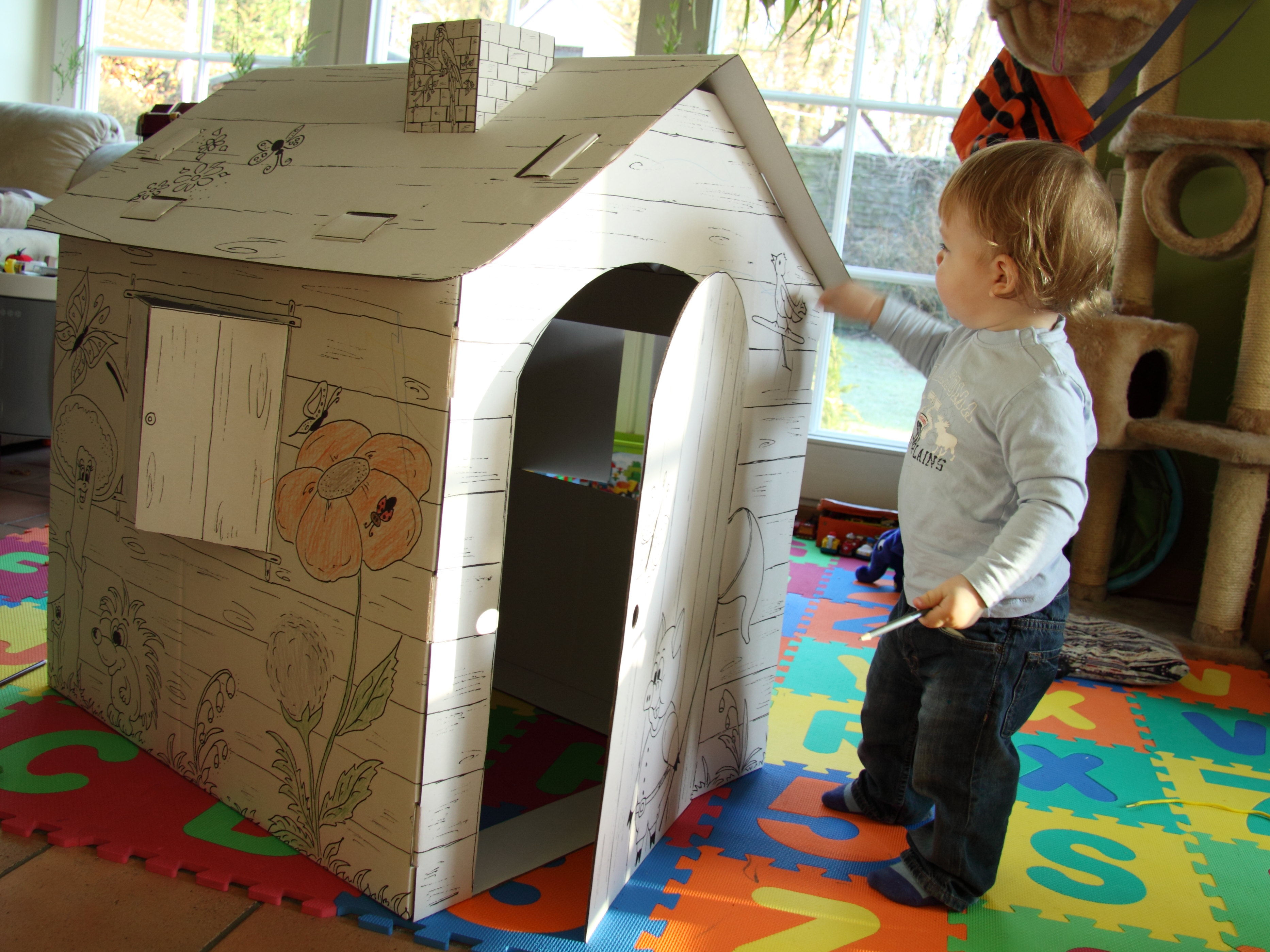 Vor einiger Zeit gab es im Discounter ein kleines Papphäusschen zu erstehen. Da griffen der Ehemann und ich gleich zu und machten uns zu Hause ans Basteln… für den Baron natürlich.