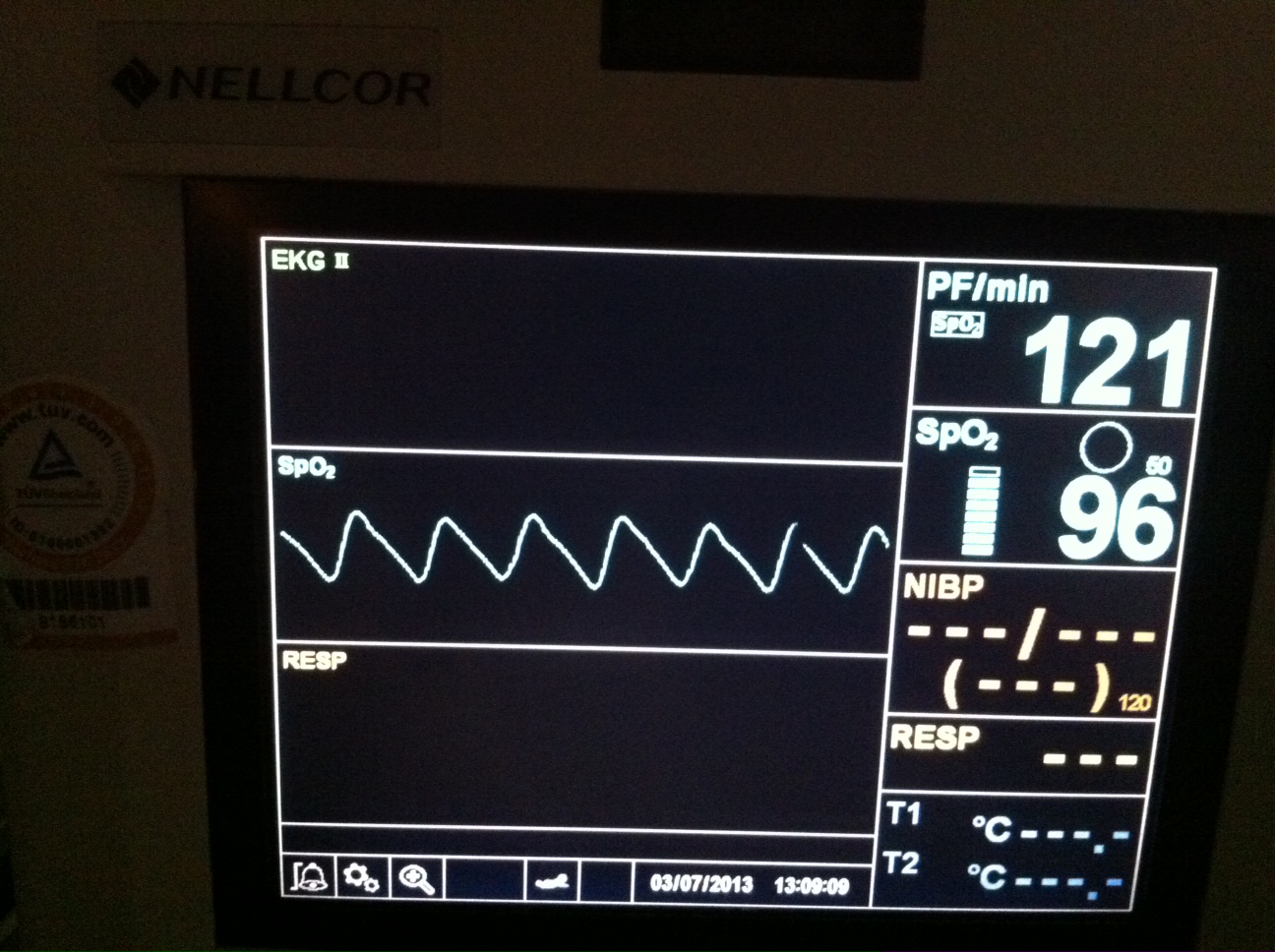 Eine Woche lang das wichtigste Gerät für den Kleinen. Die Sauerstoffsättigung musste 24h lang über 92 liegen. Erst dann durften wir nach Hause. Er war ständig an diesen Monitor angeschlossen und Mama hat diesen immer im Auge gehabt.