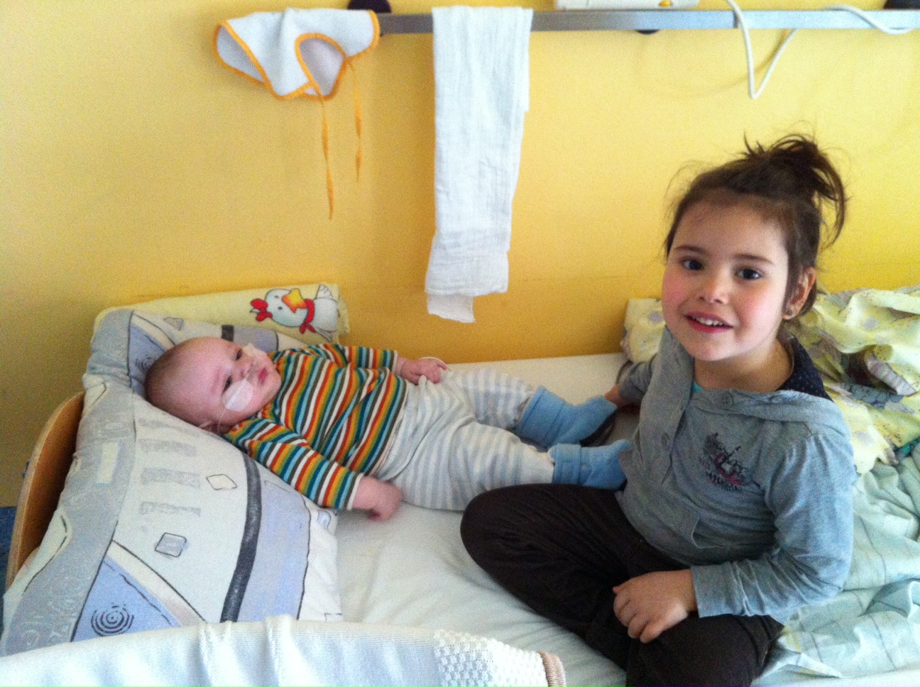 Ab Tag 4: Eines der Vorteile, wenn man nicht allein auf dem Zimmer liegt. Das Entertainment durch Geschwisterkinder der anderen Babypatienten ist gesichert. Der kleine Neo freute sich über die sympathische, kleine Beyza, die ihn auch ganz toll fand.