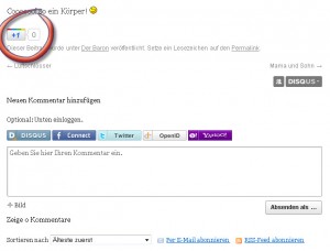 Danach öffnet sich der Beitrag neu mit der Möglichkeit Kommentare zu geben und „+1“ zu setzen: