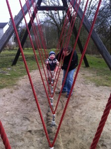Innerhalb kürzester Zeit hatten wir das Brot geschmissen. Es war einfach zu kalt um sich länger dort aufzuhalten. Der Baron bewegte sich in seinem Fußsack keinen Zentimeter. Schaute ab und zu interessiert mal über das Brückengelände und freute sich über seine warmen Füße.
