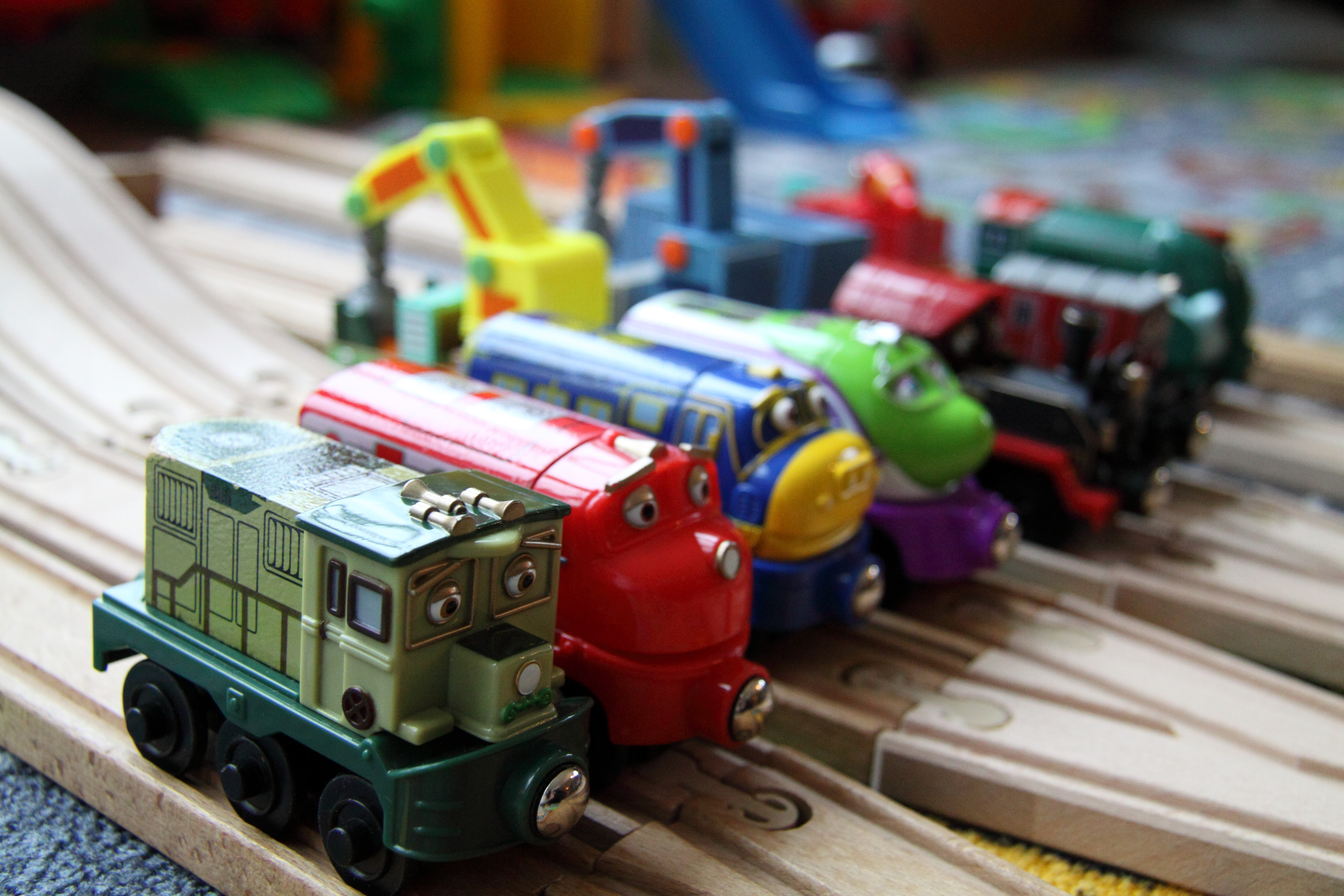 Kurz danach hielten die Chuggingtons bei uns Einzug. Die zweite Markenware, denen wir nicht widerstehen konnten. Drei animierte Eisenbahnen und ihre Abenteuer. Der Baron inhalierte die Serie und bald schon hatten wir herausgefunden, dass es diese auch für Zuhause gab. Nämlich als Holzeisenbahn. Der absolute Knaller. Chuggingtons auf den hauseigenen Holzschienen. Ziemlich schnell war eine beträchtliche Anzahl von Eisenbahnen der Serie auf dem Spielteppich unterwegs: