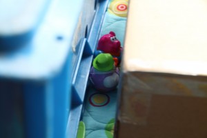 Kennt ihr noch „Luzie, der Schrecken der Strasse“? Dort gab es die beiden Knetfiguren Friedrich und Friedrich. Der Eine orange, der Andere grün. Beide Knetfiguren haben sich bei Luzie immer sehr lebendig gezeigt und mit ihr geredet. Wenn ein Erwachsener in den Raum kam, stellten sie sich stumm und bewegten sich nicht. Sowas habe ich auch bei uns gestern hinter den Kartons für den Baron entdeckt. 😀